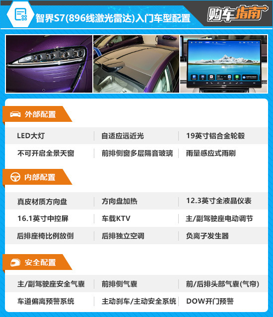 作为一款主打年轻化定位的中大型车,智界S7在设计以及配置等方面都展现出了十足的诚意,具备很强的综合竞争力。不久前,搭载896线双光路图像级激光雷达的新款智界S7正式上市,产品力得到进一步提升。那么,智界S7(896线激光雷达)哪款配置最值得入手?本期《购车指南》将为您解答。